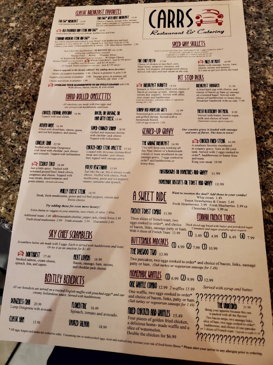 Welcome to Carr's Restaurant, a hidden gem located at 11006 Bridgeport Way SW in Lakewood, WA. Renowned for its hearty breakfast, Carr's captivates diners with an inviting atmosphere adorned with nostalgic car and train themes and vintage decor. The menu boasts generous portions that satisfy even the biggest appetites.